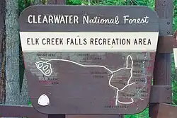 - Elk Creek Falls, Clearwater County, Idaho, 46°44′5″N 116°10′27″W / 46.73472°N 116.17417°W, el. 2,562 feet (781 m) [18]