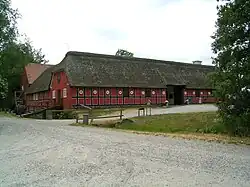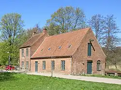 Residential wing from 1831. The watermill has been demolished. The surviving building was listed in 1980.[2]