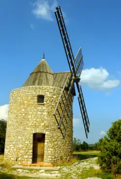- ^ This windmill is of a location named after a watermill being the heart of a large property (usually called "Le moulin des Roberts" because it used to belong to the Robert family). According to the "Archives départementales de Vaucluse", these two mills were in the 18th and 19th century the biggest for production in the Gordes area.