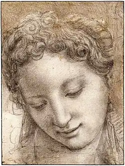 Head of a Smiling Young Woman | c. 1542–1543 | 28.8 x 21.6 cm | Louvre, Paris | Charcoal and black chalk, with stumping, highlighted with white chalk |