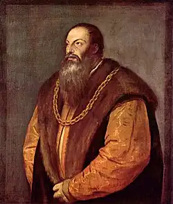 Portrait of Doge Andrea Gritti | c. 1546–1550 | 133.3 × 103.2 cm | National Gallery of Art (Washington, D.C.)[23] |