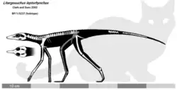 Litargosuchus is a sphenosuchian crocodylomorph, a basal member of the crocodylomorph clade from the Early Jurassic of South Africa. Its genus name Litargosuchus is derived from Greek meaning "fast running crocodile" and its species name leptorhynchus refers to its gracile snout. Litargosuchus, along with all of South Africa's crocodylomorph taxa, are confined to the upper Elliot Formation (UEF) in South Africa.[1][2][3]
