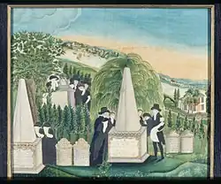 Sarah Pierce, born in 1767, was the fifth child and fourth daughter of Litchfield farmer and potter, John Pierce, and his wife Mary Paterson. Sarah's mother died in 1770 and two years later her father remarried and had three more children. Her father died in 1783, leaving her brother John Pierce Jr., responsible for his step-mother and seven younger siblings.[1] During the Revolution, Pierce had a distinguished record, rising to become the Assistant Paymaster of the Continental Army, and personal friend of General Washington.[1] Following the close of the war, he was named Commissioner of the Army, responsible for settling the army's debts.[1] John Pierce became engaged to Ann Bard, the daughter of Dr. John Bard, Washington's personal doctor in New York.[1] In order to marry, Pierce sent his younger sisters Mary and Sarah to New York City schools specifically to train to become teachers so that they could help support their step-mother and younger half-siblings.[1] Returning to Litchfield, Sarah Pierce brought a few students with her from New York and established her school. It was a family undertaking as her sister Mary handled the boarders and the school accounts, while her sister Susan's husband, James Brace, also taught in the school.