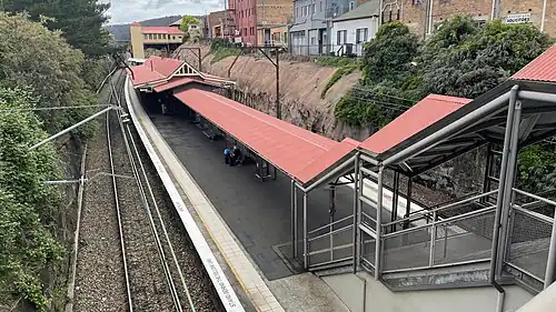Lithgow railway station is a heritage-listed former station master's residence and railway station located on the Main Western line at Railway Parade, Lithgow, City of Lithgow, New South Wales, Australia. It was designed and built by New South Wales Government Railways and built from 1924 to 1925. It is also known as Lithgow Railway Station Group and Residence and Eskbank East. The property was added to the New South Wales State Heritage Register on 30 August 2013.[3] The station has frequent NSW TrainLink services running to and from Sydney Central.