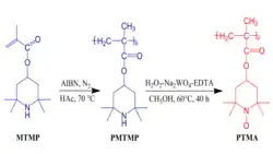 PTMA is an organic nitroxide radical electrode-active polymer, and LiFePO4 is the inorganic electrode-active material. PTMA is used because it has a high capacity and a long cycle life.[10] To synthesize organic radical-inorganic hybrid electrodes, electrode environments for each component must be optimized. PTMA and LiFePO4 were combined with entire PTMA and LiFePO4 electrode with different weight ratios: 25/75, 50/50, and 75/25.[11]
