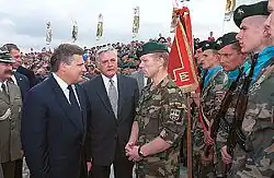 During a visit of the President of Poland Aleksander Kwaśniewski to Lithuania on April 14, 1999, LITPOLBAT was presented with two military standards, Polish and Lithuanian ones, financed by presidents of both countries. In 2000 LITPOLBAT became a part of the European Union's Rapid reaction force.
