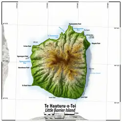 - ^ "Map of Hauturu Little Barrier Island". Rimutaka Forest Park Trust. Archived from the original (Topo Map) on 6 April 2017. Retrieved 14 September 2012.