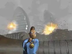 The player-character, Twinsen, can be switched between four different "behaviour modes" (Normal, Athletic/Sporty, Aggressive, and Discreet), each changing the character's abilities and interactions with the game world.[8] Combat in the game is mainly conducted using the Magic Ball, a glowing ball of energy which the player throws towards enemies, the trajectory and angle of the ball changing depending on the mode the player is in. Switching to the "Aggressive" mode also allows Twinsen to engage in combat via punching and kicking. After completion of certain tasks the player is presented with a full-motion video cut-scene. All text in the game is spoken by the characters. Essentially every character in the game is interactive and will respond differently when Twinsen speaks to them. Enemies are often performing tasks while the game world is active.
