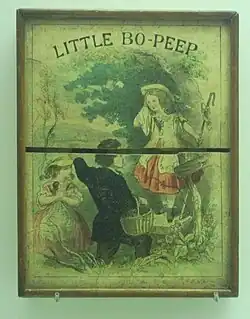 The earliest record of this rhyme is in a manuscript of around 1805, which contains only the first verse which references the adult Bo Peep , called 'Little' because she was short and not because she was young.[3] There are references to a children's game called "bo-peep", from the 16th century, including one in Shakespeare's King Lear (Act I Scene iv), for which "bo-peep" is thought to refer to the children's game of peek-a-boo,[4] but there's no evidence that the rhyme existed earlier than the 18th century.[3] The additional verses are first recorded in the earliest printed version in a version of Gammer Gurton's Garland or The Nursery Parnassus in 1810, published in London by Joseph Johnson.[3]