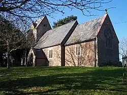 St Guthlac's Church dates to the 12th and 13th century, and was "heavily restored" by the Herefordshire architect F.R. Kempson in 1870, and consists of a chancel, nave, west tower, and a gabled south-west porch. Constructed of dressed rubble masonry, it is tile roofed, and contains in the chancel a 19th-century traceried east window, a 12th-century window in the north wall, a piscina with aumbry, and 19th-century encaustic floor tiles. The church's stained glass is 19th-century, with that in the west window of grisaille decoration.[26][27]