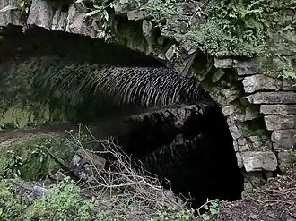 Permission to extend the quarry was granted in 1826 and the canal was extended through a second tunnel. A further extension had been made by 1862, when a viaduct was built (as an accommodation bridge) across the cut.[1] Rather than building a large wharf or dock, limestone was loaded directly from the quarry into waiting barges in a widened basin.[2][12]