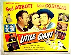Little Giant is a 1946 American comedy drama film directed by William A. Seiter and starring the comedy team of Abbott and Costello alongside Brenda Joyce and Jacqueline deWit. It was produced and distributed by Universal Pictures. The film was released in the United Kingdom with the alternative title On the Carpet.