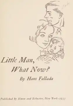 Little Man, What Now? (German title: Kleiner Mann – was nun?) is a novel by Hans Fallada, which although first published in June 1932,[1] is set between 1930 and November 1932. The book was an immediate success in Germany, given its intense descriptions of the harsh life in the years after the Stock Market Crash of 1929 and the first years of the Great Depression. The book was also the breakthrough for Fallada as a writer of fiction.
