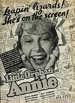 Little Orphan Annie is a 1932 American pre-Code comedy film directed by John S. Robertson, and written by Wanda Tuchock and Tom McNamara. It is based on the comic strip Little Orphan Annie by Harold Gray. The film stars Mitzi Green, Buster Phelps, May Robson, Matt Moore, and Edgar Kennedy. The film was released on November 4, 1932, by RKO Pictures.[1][2][3]