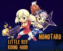 The game takes place in Storyland with areas representing a number of classic fairy tales, such as The Adventures of Pinocchio and the Three Little Pigs. Little Red Riding Hood and Momotarō are the two playable characters. Little "READY TO ROCK" Riding Hood grew up in the forest, spending her time visiting her grandmother and hunting for food.[2] She loves automatic firearms, citing "collecting weapons" as one of her hobbies.[2] Momotarō is Little Red Riding Hood's friend, who was born from a giant peach.[2] He has had over one thousand and one adventures—including fighting off demons, finding lost treasures, and repelling threats from the underworld.[2]