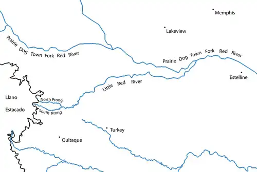 The Little Red River is an intermittent stream about 30 mi (48 km) long, formed at the confluence of the North Prong and South Prong Little Red River in Briscoe County, Texas, and flowing east-northeastward to join the Prairie Dog Town Fork Red River in Hall County, Texas.[2]