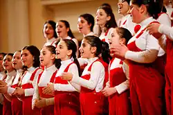 The choir has participated in various international festivals including the European Festival of Youth Choirs (Basel, Switzerland, 1995, 2014),[2] Hong Kong and Beijing International Festivals (China, 1999), Golden Ferry (Sochi, Russia, 2001), Dimitria International Festival (Thessaloniki, Greece, 2002), Armenian-American Choral Festival Song of Unity (Armenia, 2004, 2006), Children's Friendship on the Planet (Moscow, Russia, 2010), Let the Future Sing International Festival (Stockholm, Sweden, 2012), 5th Children's Choir Festival (Thessaloniki, Greece, 2015),[3] Choral Festival in Fribourg (Switzerland, 2016), Abu Ghosh Vocal Music Festival (Israel, 2017),[4] International Children's Choir Festival (Dresden, Germany, 2018),[5] Tbilisi Choral Music Festival (Georgia, 2018),[6] Interkultur Video Award (2020),[7][8] Moscow Meets Friends International Festival (2020),[9] Voices of Spirit International Choral Festival (Austria, 2021),[10] World Peace Choral Festival (Austria, 2021),[11] 25th Children of the World in Harmony International Youth Choir Festival (2021),[12] Choral Photo Promenade Photo Contest of the Europa Cantat Festival (2021), Soong Ching Ling International Youth Exchange Camp (2021), GCI 2nd Annual Virtual Holiday Concert (2021), XIV International Sacred Music Festival Silver Bells (2022).[13] The choir has also participated in EXPO 2000 (Hanover, Germany) and the Sixth World Symposium on Choral Music (Minneapolis, Minnesota, USA, 2002).[14]