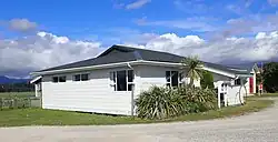 In 1953 locals agreed to raise the funds to build a community hall on the site of the schoolhouse; the old hall and hotel were located next to the now-closed port. Rimu and mataī trees donated by a local farmer were felled in Wangapeka and milled at Granite Creek, and a team of locals volunteered their time and skills to build the hall and wire it for electricity. With yellow pine pilings and matai flooring, it opened on 17 December 1954.[13] In 1955, the Little Wanganui Hotel was also relocated 2 kilometres (1.2 mi) from the former port to the Karamea Highway; the timber from the old hotel was used to build the new pub.[14]