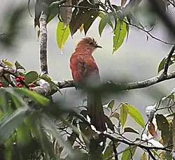 The little cuckoo (Coccycua minuta) is a species of bird in the cuckoo family (Cuculidae) from South America and Panama. It was formerly placed in the genus Piaya, but was moved to the reinstated genus Coccycua following the discovery that its closest living relatives are a couple species traditionally placed in Coccyzus or Micrococcyx, rather than the other members of Piaya.[3]