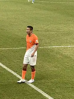 Liu transferred to fellow Chinese Super League side Shandong Luneng on 5 February 2017.[1] He made his debut for Shandong on 7 April 2017 in a 2–1 away defeat against Shanghai SIPG.[4] On 25 July 2018, he scored his first goal for the club in a 3–0 home win over Guizhou Hengfeng in the quarter-finals of 2018 Chinese FA Cup.[5] He would go on to establish himself as a regular within the team and would go on to be part of the squad that won the 2020 Chinese FA Cup.[6]