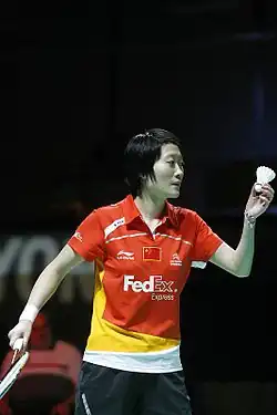 Liu Xin (born 11 June 1990) is a Chinese professional badminton singles player. Born in Benxi, Liaoning, her string of good performances during the 2010 and early 2011 helped her to attain the career-best ranking of 5 in April 2011.[3] She was part of the Chinese team that won gold medals at the 2010 and 2014 World University Championships, and also at the 2014 Asian Games.