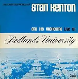 Live at Redlands University is a double live album by American jazz musician Stan Kenton and his orchestra, released in late 1970 by Creative World Records. It was the initial release on Kenton's newly formed record company after he broke his relationship with Capitol Records. Recording for the album took place in Southern California at Redlands University in August 1970.