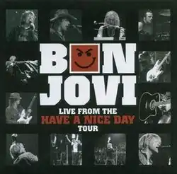 Live from the Have a Nice Day Tour is a live EP by American rock band Bon Jovi. It was released on February 7, 2006 only in United States through the Wal-Mart stores.[1] It contains 6 live track recorded live during the Have a Nice Day Tour in Banknorth Garden, Boston, MA on December 10, 2005.