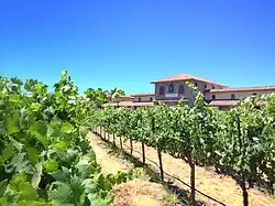 Livermore's wine industry grew after the 1880s,[29] and it became notable for wineries like Wente Vineyards, Concannon Vineyards, and Cresta Blanca Winery.[15] Since it has a Mediterranean climate, gravelly soil, warm days and cool nights, it was a good location to grow wine grapes. By 1880 the wheat and barley fields were being replaced by vineyards.[21] As well as the main products of the town, extensive chromite deposits were found nearby and exploited for a time.[21] Magnesite deposits were exploited on Red Mountain, near the end of Mines Road.[32] The Remillard Brick Company was also in Livermore in 1885, and was producing an extensive line of bricks and employing over 100 men.[21]