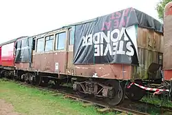In 1945–47, a three car train was modernised, replacing the timber body with aluminium and plywood and fitting power operated sliding doors under control of the guard.[10] New trains were considered too expensive so six more trains were rebuilt.[11] The trains were all removed from service when the railway closed in 1956. An original example was retained by the Museum of Liverpool[12] and an example of a modernised carriage is stored at the Electric Railway Museum, Warwickshire.