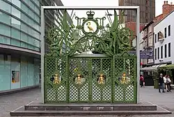 After restoration the gates were returned to Liverpool on 8 August 2011 and were re-erected under the name "The Sailors Home Gateway" in the pedestrian section of Paradise Street in Liverpool One, close to the original site of the Sailors' Home.[2][3]