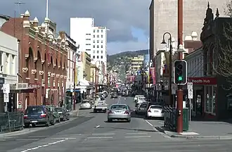 Liverpool Street is one of the main streets in the Hobart central business district, Tasmania, Australia.