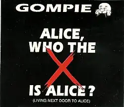 Gompie is a project of Peter Koelewijn and Rob Peters. Peters, while visiting a bar called Gompie in Nijmegen, heard "Living Next Door to Alice" by Smokie. After the name Alice in the song, the disc jockey Onno Pelser turned down the volume and the crowd sang "Alice, who the fuck is Alice?". Peters realized it could become a hit record, contacted Koelewijn and a day later the song was recorded and released under the name Gompie.[28]