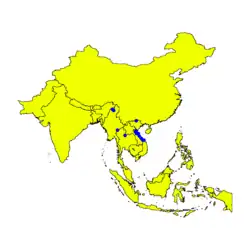 The species is native to Bangladesh (Chittagong), Myanmar, in India (Arunachal Pradesh, Assam, Madhya Pradesh, Meghalaya, Nagaland, Sikkim, West Bengal), Bhutan, China (Yunnan) and Thailand (northern and peninsular).[3]