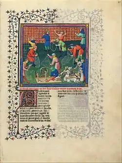 The Livre de chasse is a medieval book on hunting, written between 1387 and 1389 by Gaston III, Count of Foix, also known as Fébus or Phoebus, and dedicated to Philip the Bold, Duke of Burgundy.[1] Fébus was one of the greatest huntsmen of his day and his treatise became the standard text on medieval hunting techniques. It was described by scholar, Hannele Klemettilä, as "one of the most influential texts of its era".[2]
