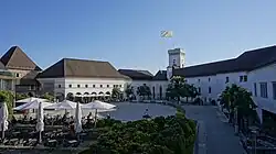 In the embrace of the wall and the towers, the space of the inner courtyard of the castle is ideal for various events. The story confirms that it was used for the gathering of the army of the nobility, since there was not enough room in the city. At a time when the provincial prison (1813–1945) was here, the courtyard was used as a walking space, the prisoners in the shade of the chestnut trees performed their daily tasks. The traces of the last reforms play with the Gothic and Baroque architectural forms of that time, also inserting modern elements. The current courtyard is a dynamic meeting point - a point through which it is possible to reach all the inner spaces of the castle.[16]