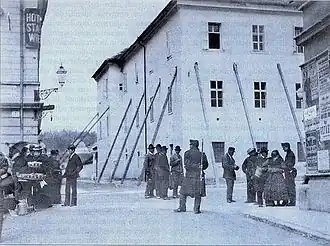- ^ Šašek Kocbek, Nina (14 April 2015). "FOTO: Ljubljana po katastrofalnem potresu in danes. Mesto je vstalo kot feniks iz pepela" [PHOTOS: Ljubljana After the Catastrophic Earthquake and Today. The City Rose like a Phoenix from the Ashes]. 24ur.com (in Slovenian). 24ur.com.