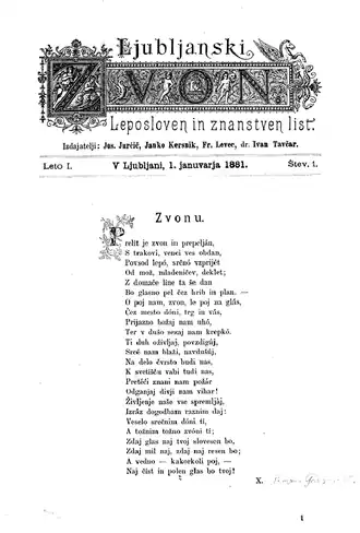 Ljubljanski zvon (The Ljubljana Bell) was a journal published in Ljubljana in Slovene between 1881 and 1941. It was considered one of the most prestigious literary and cultural magazines in Slovenia.