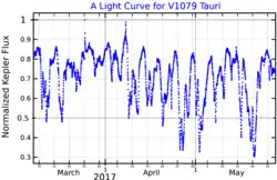 | V1079 Tau, GSC 01278-00193, TYC 1278-193-1, 2MASS J04391779+2221034[1] | |