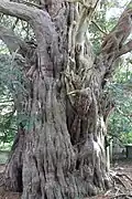 The churchyard contains a mound, the Tomen Garmon, which may be of Bronze Age origin, accompanied by ancient yew trees.