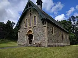 Holy Trinity Church was built in 1865 of local sandstone with a Gothic style bell tower, stained glass windows, wooden barrel vault nave, decorated interior with 25 frescoes. Benjamin Bucknall was the architect.