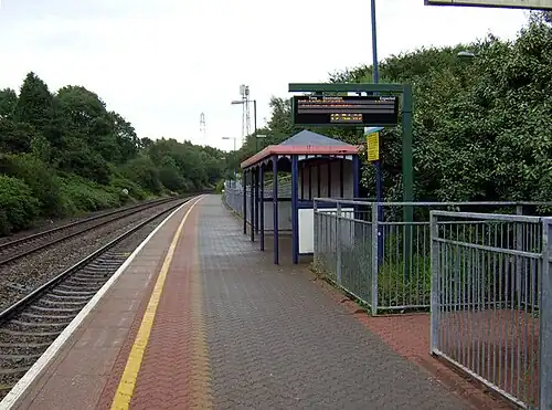 ![]() The westbound platform for trains to Swansea at Llansamlet | |||||