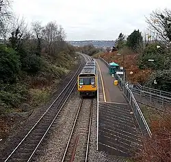 Llansamlet railway station is a minor station in Llansamlet, Swansea, south Wales. The station is located below street level at Frederick Place in Peniel Green, 212 miles 8 chains (341 km) from London Paddington (via Stroud).[1] It is served by local trains operated by Transport for Wales on the South Wales Main Line between Swansea and Cardiff.