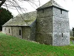 Llanstephan is centred around the isolated church of St Stephen (or Ystyffan).[1][2] Llanstephan is first recorded as Llanytyffaen wen in the 15th century, with the 'wen' probably referring to the whitewash of the church.[2] The church appears to date from the 13th or 14th century, with a two-and-half stage tower. The building was described in 1859 as not in good condition,[3] but was re-roofed and repaired in 1867–68.[1]