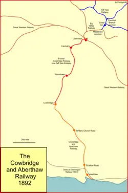 The Taff Vale Railway was persuaded to acquire the Cowbridge and Aberthaw Railway company, which it did from 1 January 1895, authorised by Act of 17 August 1894.