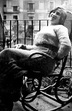 In 1932, she became the partner of the CNT militant Josep Viadiu, with whom she had three children. When the Spanish Civil War broke out in 1936, she enlisted in the Durruti Column and went to fight on the Zaragoza front with other volunteers from the CNT and the FAI.[1] There she was responsible for the evacuation of Aragonese children. But after internal conflicts within the republican side, the army became militarized, and one of the first measures taken was to exclude women from the front. Thus, images of militiawomen were eliminated from propaganda posters and in their place appeared images of women dedicated to social assistance tasks, in the rear. This rejection motivated her entry to the Mujeres Libres group, which combined the libertarian struggle with the feminist.[2]