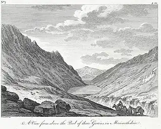 ![]() ‘A View from above the Pool of three Grains, in Merionethshire’, by Samuel Hieronymus Grimm | |