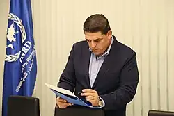 ![]() Loai Deeb speaking at a conference held by the organization that he heads | |