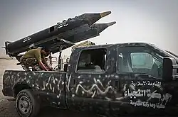 New types of IRAMs including Volcano rockets[11] and Elephant rockets,[12][13][14] have been used during the Syrian Civil War by both the government and the rebels as well as by the IS forces in Syria and elsewhere. In the 2016–2017 Battle of Mosul, the Iraqi interior ministry's Rapid Response Division utilized IRAMs mounted on Humvees against IS.[15]