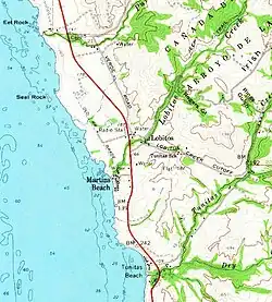 The Ocean Shore Railroad, which operated between San Francisco and Tunitas Creek from 1907 to 1920, passed near the village. There was apparently no station in Lobitos.[3] Highway 1 originally passed through Lobitos; it was later rerouted to the west of the village, closely following the old railroad route.