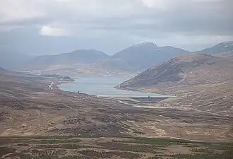 Loch Glascarnoch (Scottish Gaelic: Loch a' Ghlais-Chàrnaich) is a 7.2 km-long (4.5 mi) reservoir in the Scottish Highlands between Ullapool and Inverness. The reservoir was built by the North of Scotland Hydro-Electric Board as part of the Conon Hydro Scheme, and is dammed on its eastern end.